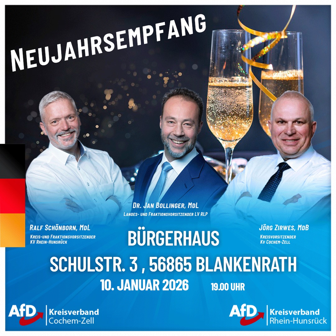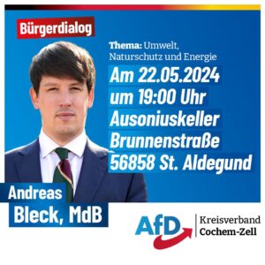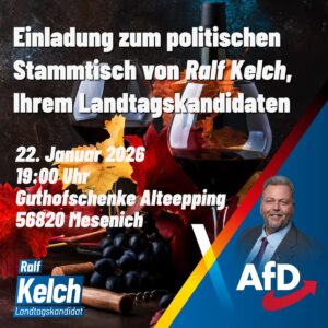 Der AfD Kreisverband Cochem-Zell lädt alle Mitglieder, Förderer, Freunde und interessierte Gäste zum Frühlingsfest am Gasthaus zur Buche ein.